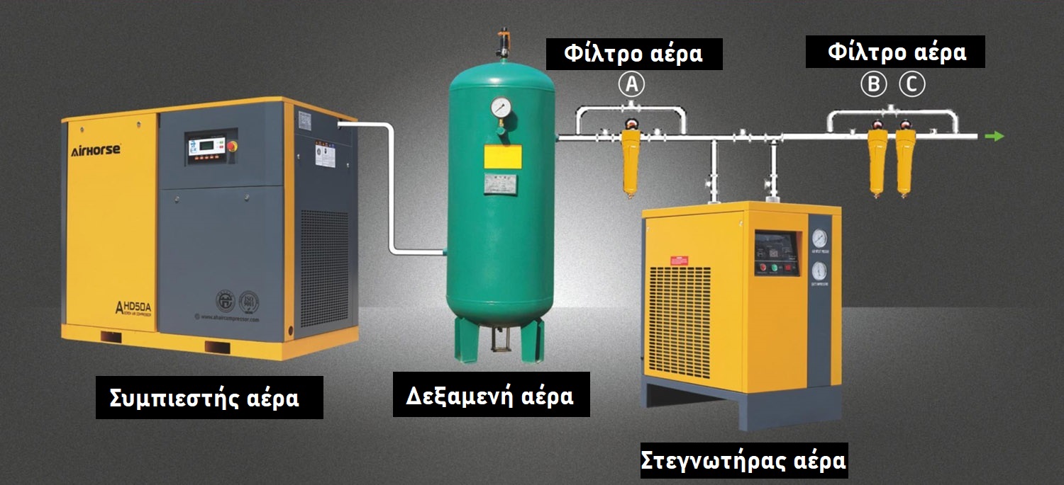 Ένας υψηλής αποτελεσματικότητας κυκλωνικός διαχωριστής φιλτράρει και απομακρύνει πάνω από 99% του νερού, λαδιού και στερεών ρυπαντών από τον πεπιεσμένο αέρα. Ο καθαρός και ξηρός αέρας είναι κρίσιμος για την προστασία πνευματικών εργαλείων και βιομηχανικών μηχανημάτων.