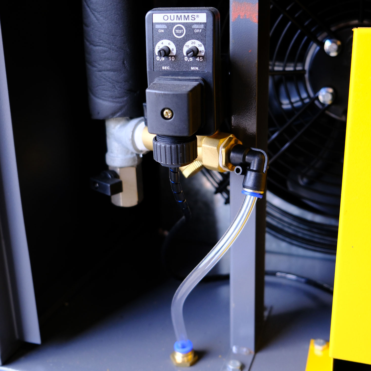 Το σύστημα διαθέτει αυτόματη ηλεκτρονικά ελεγχόμενη αποστράγγιση συμπυκνωμάτων. Με τη χρήση ειδικής βαλβίδας, μεταλλικού φίλτρου και καινοτόμου τεχνολογίας συγκράτησης νερού, εξασφαλίζεται σταθερή και αξιόπιστη απομάκρυνση συμπυκνωμάτων χωρίς κίνδυνο επιστροφής τους στο σύστημα.