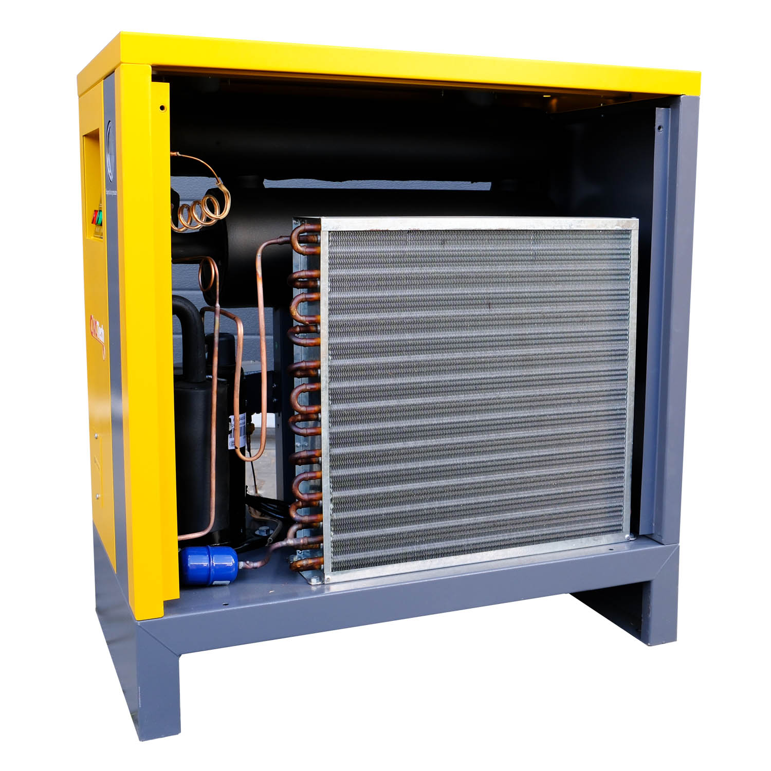 Το υψηλής απόδοσης σύστημα εξάτμισης εξασφαλίζει μεγάλης επιφάνειας ανταλλαγή θερμότητας. Αυτό προσφέρει μεγάλο χρόνο παραμονής του αέρα στο σύστημα και εντατική συμπύκνωση υγρασίας – αποτέλεσμα: άριστα αποξηραμένος πεπιεσμένος αέρας.